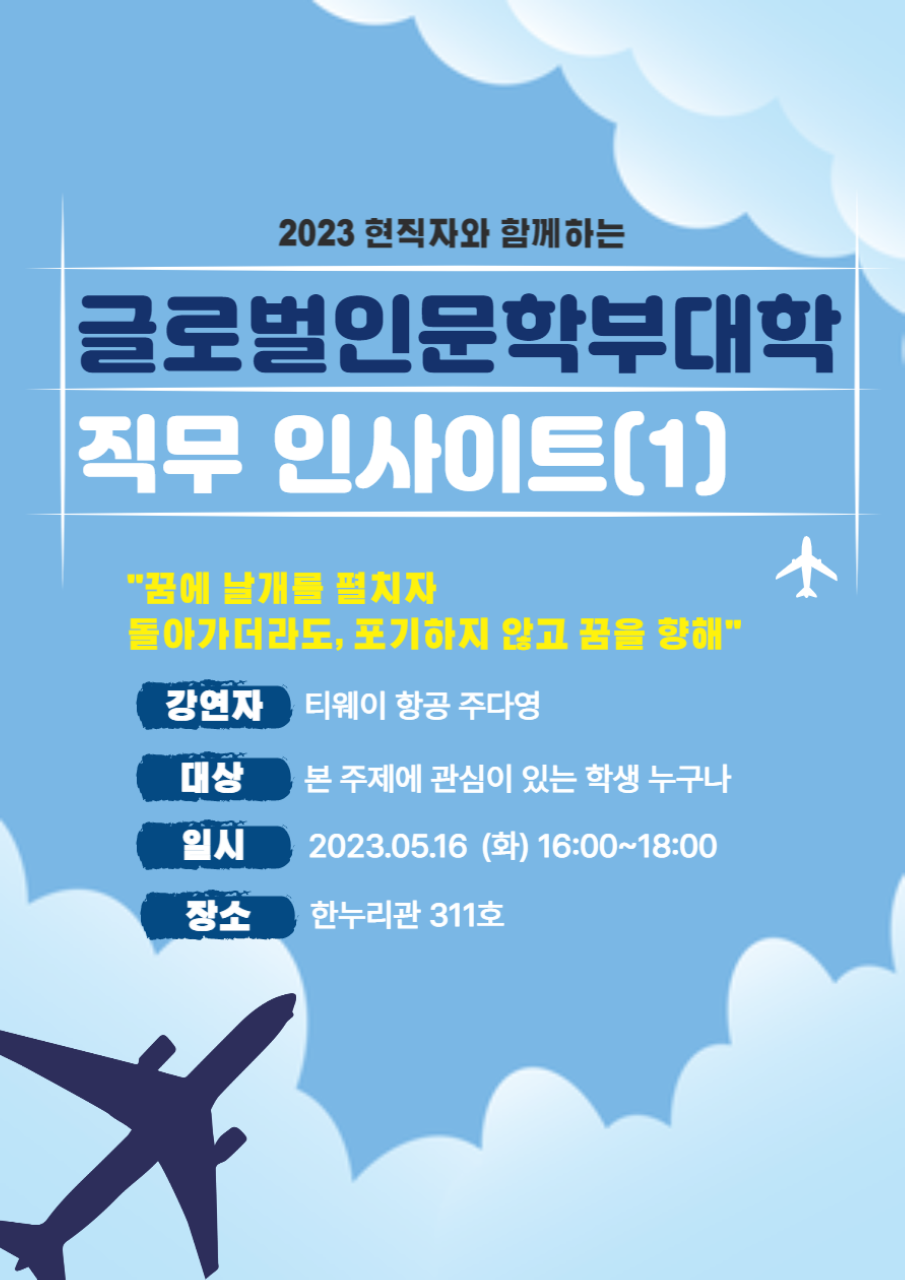 - [홍보] 글로벌인문학부대학 직무 인사이트(1)_주다영, 티웨이 항공
